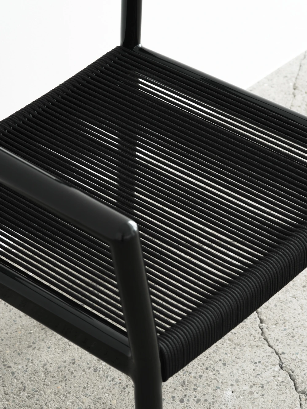 移動や推移を意味する「Passage」という名の通り、屋外向けのスタッカブルチェアでありながらも置く場所を選ばない。水捌けの良いロープを張った座面と溝の施された背はテラスに常に置いておける上、ダイニングにあっても違和感を感じさせないのは、屋内外という用途を超えた椅子としての完成度の高さゆえだろう。自宅にプロトタイプを持ち帰り検証を重ねるデザインプロセスがあってこそ、ディテールやプロポーションの完成度は非常に高く、その座り心地は張りものの椅子に勝るとも劣らない。64年にキャンプギアのメーカーとして創業したKettalが蓄積してきた技術により、ジョイントや溶接部の仕上げは滑らかで、手跡を全く感じさせない。一見非常にシンプルでありながら、唯一無二の個性とクオリティを誇る実用的なチェアは、生活に長く寄り添ってくれるだろう。