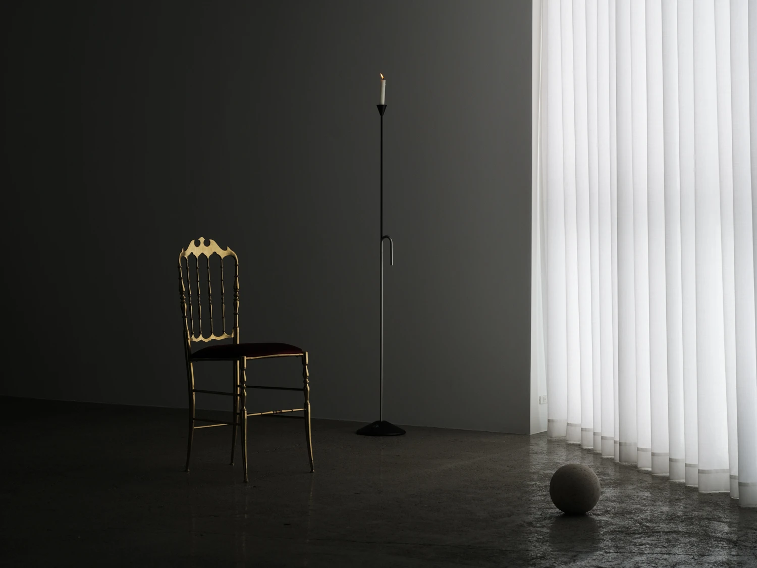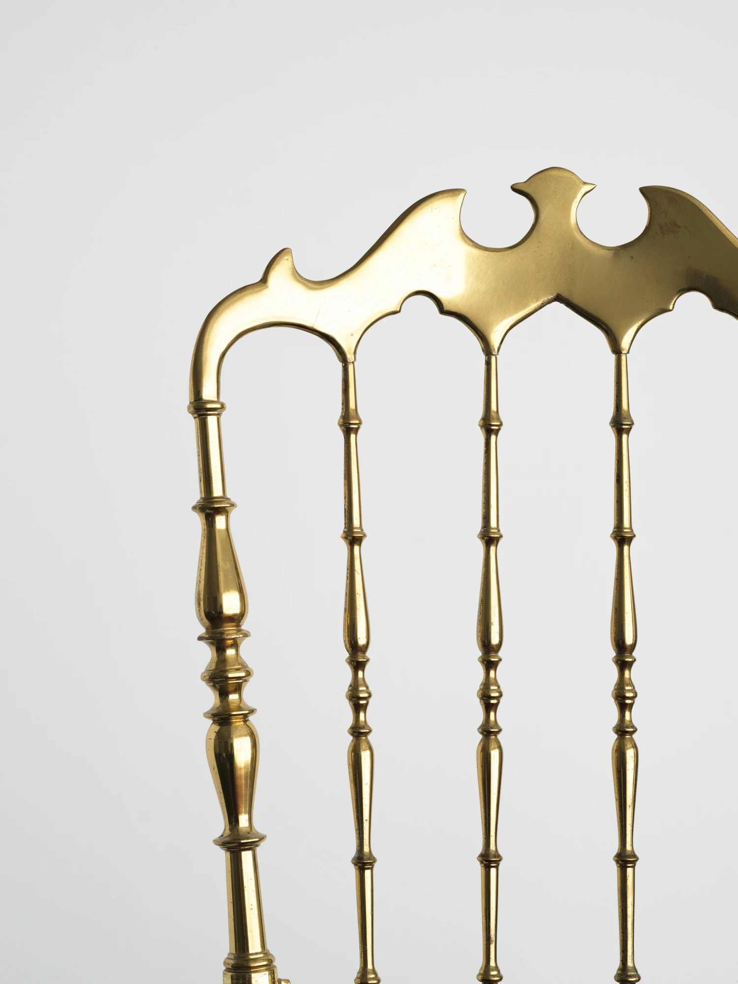 こちらの椅子もChiavariチェアの一種と見られるが、フランス19世紀の「ナポレオンチェア」のような特徴もあるため、異なったスタイルがミックスされたようだ。長い歴史の選別に耐えた型だけあって、座り心地、持ち運びのしやすさは申し分ない。ヨーロッパの文化の厚みを感じながら日々使っていただけるだろう。