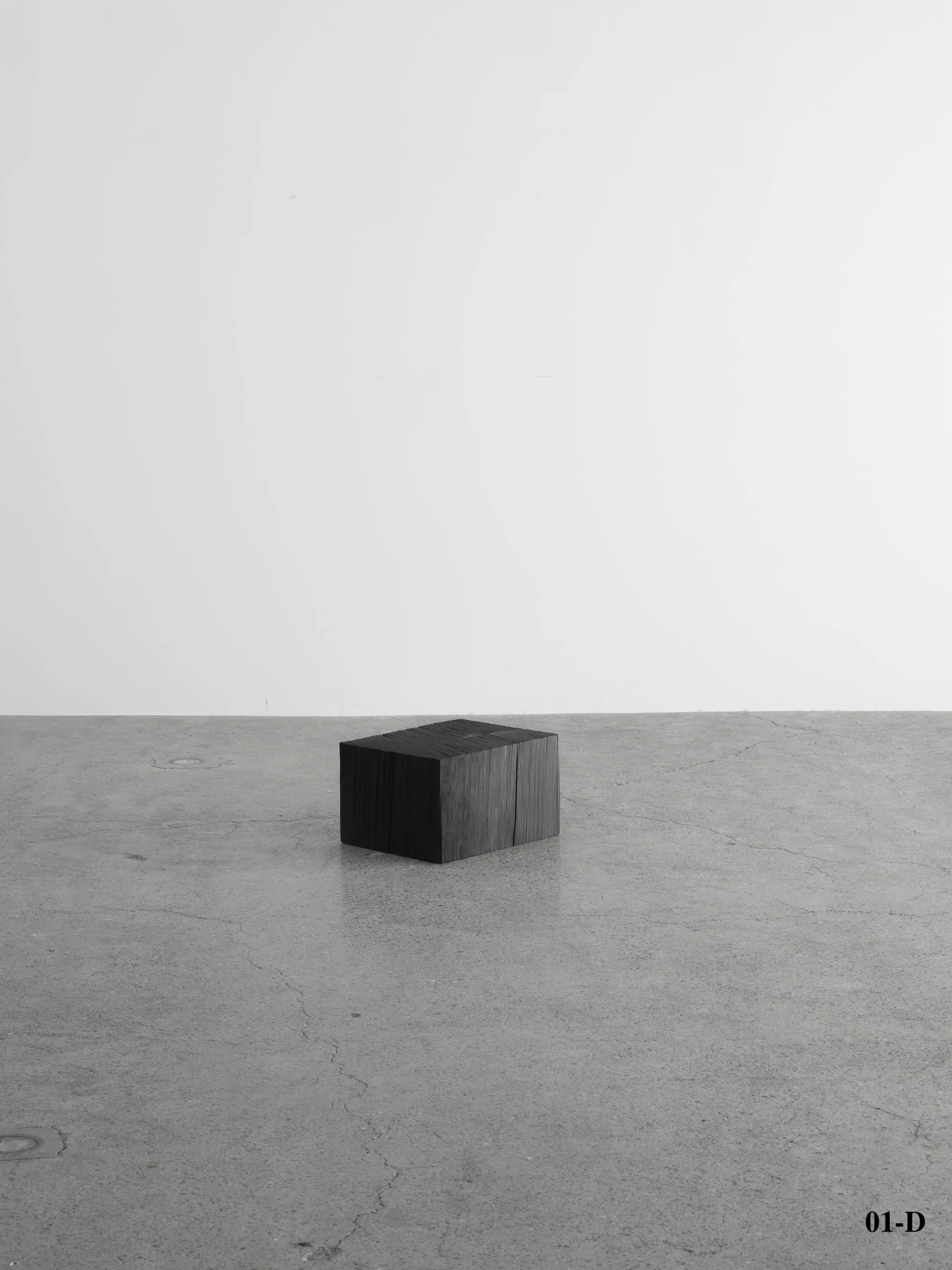 重厚でありながら静謐な家具やオブジェクトは、能登で産出されたヒバの無垢材のみで構成されている。表面のテクスチャは、チェンソーカービングによるもの。刃長や馬力の異なる三つのチェンソーを使い分けることで、見る位置や光の角度によって多様な表情が現れる。特筆すべきは、能登で木材加工を生業にする一人の生産者の手によって施されていることだ。個人の感覚や個性が反映されながらも、一つ一つが違った表情を持つ。
