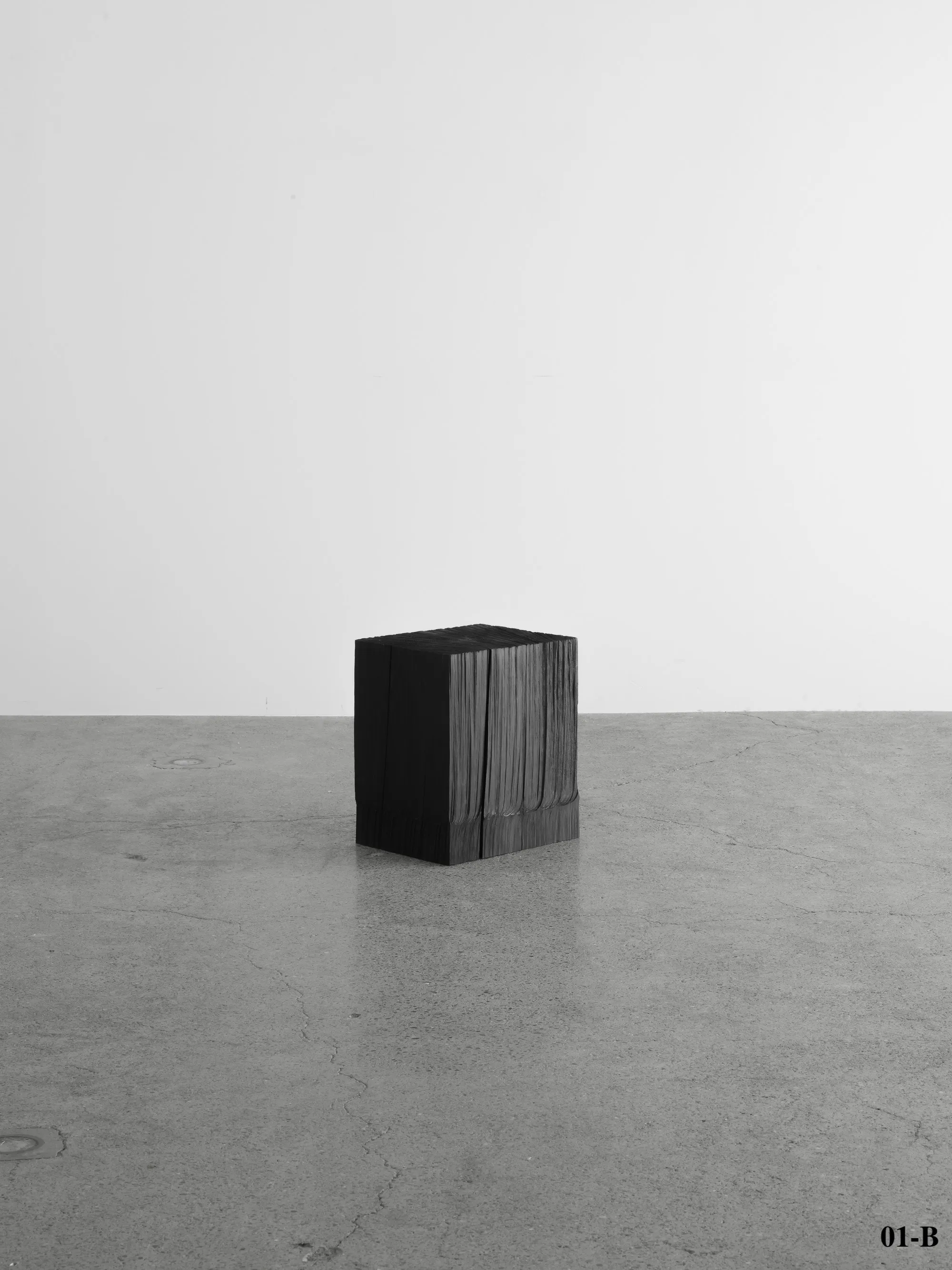 重厚でありながら静謐な家具やオブジェクトは、能登で産出されたヒバの無垢材のみで構成されている。表面のテクスチャは、チェンソーカービングによるもの。刃長や馬力の異なる三つのチェンソーを使い分けることで、見る位置や光の角度によって多様な表情が現れる。特筆すべきは、能登で木材加工を生業にする一人の生産者の手によって施されていることだ。個人の感覚や個性が反映されながらも、一つ一つが違った表情を持つ。