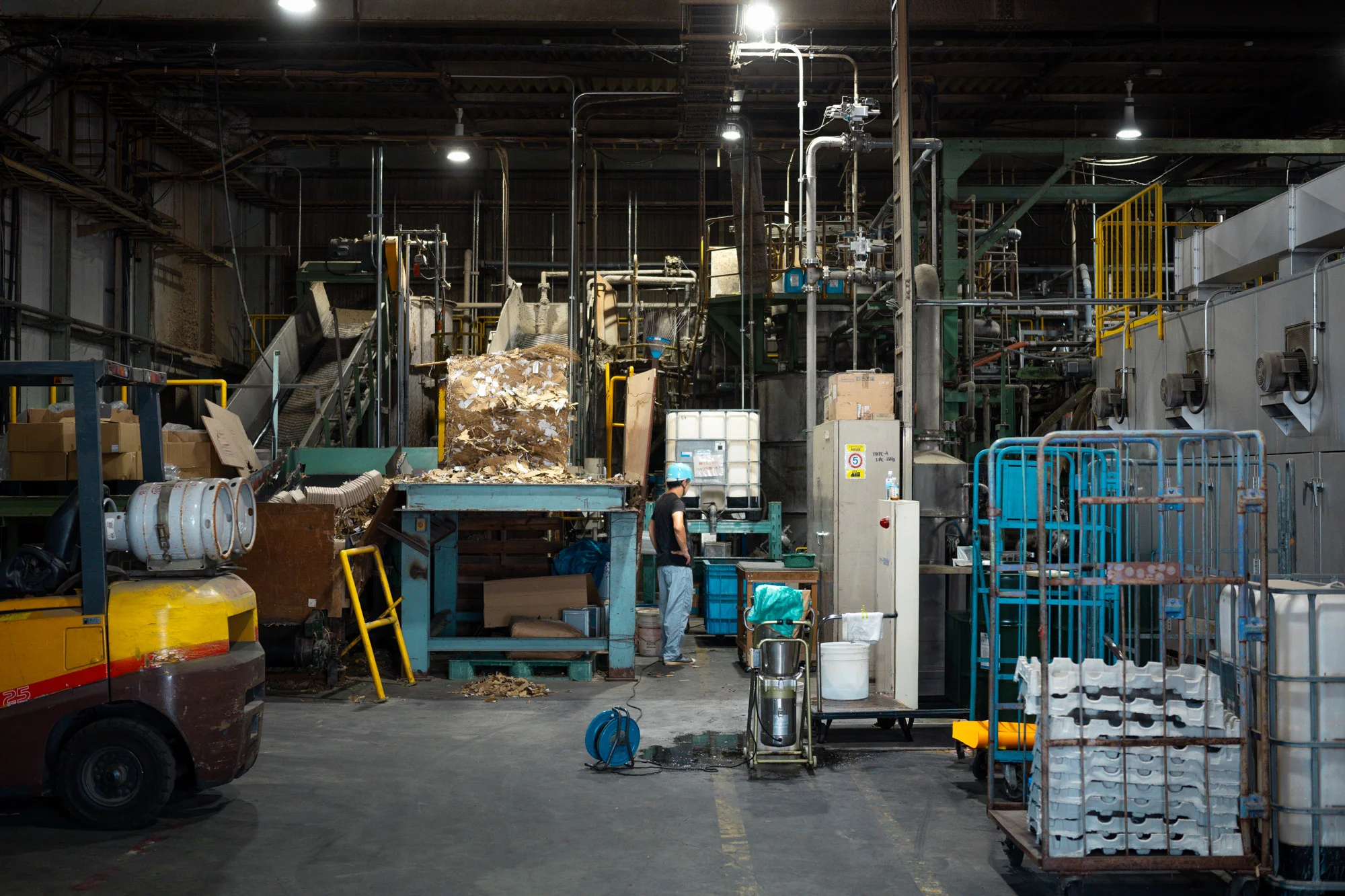 Initial attempts used mass-production machinery, but issues with water volume and material mixing prevented ideal colour control. After much trial and error, the method evolved into modifying suction-type equipment for handheld use and producing the pieces in small water tanks. This process was unprecedented even for the factory, and the current production method took shape through collaboration between the artist, the factory, and Takeo. Finely torn coloured paper is mixed into the base paper; the accidental blending of colour particles creates unpredictable expressions. No matter how meticulously the coloured paper is blended to achieve an ideal vision, the final form remains unknown until the drying process concludes. The core of this project lies in this very process – avoiding rigid preconceptions about the finished piece, constantly observing the behaviour of the materials, and embracing the flow. It is an approach impossible within mass production.
