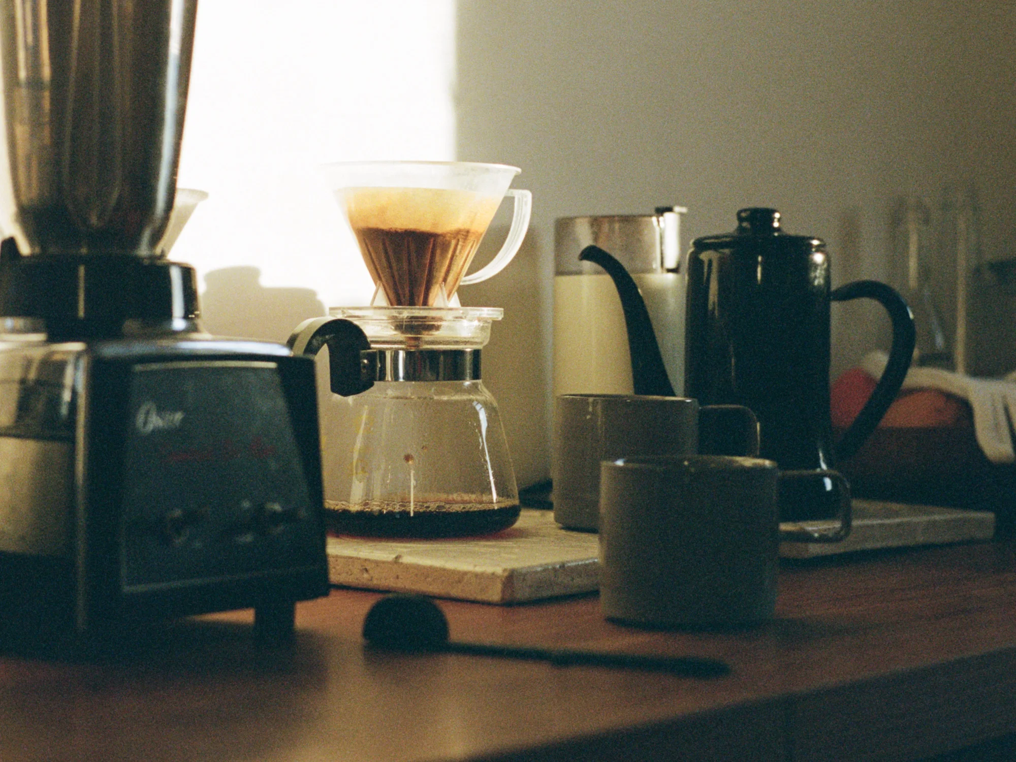 和紙職人のハタノワタルさんの和紙で壁と天井を覆ったリビングで過ごす時間は、ぼくたち家族にとって特別なものになっている。朝になると、障子を通して差し込んでくる光が、部屋全体をやわらかく包み込む。少しざらりともふわりともいえる質感の和紙は、光を受け止めながら、時間の流れを静かに部屋の中に留めてくれるように感じられる。リビングの真ん中に設置したキッチンカウンターで、朝一人コーヒーを淹れる時間は、いまでは自分の生活に欠かせないルーティンになっている。