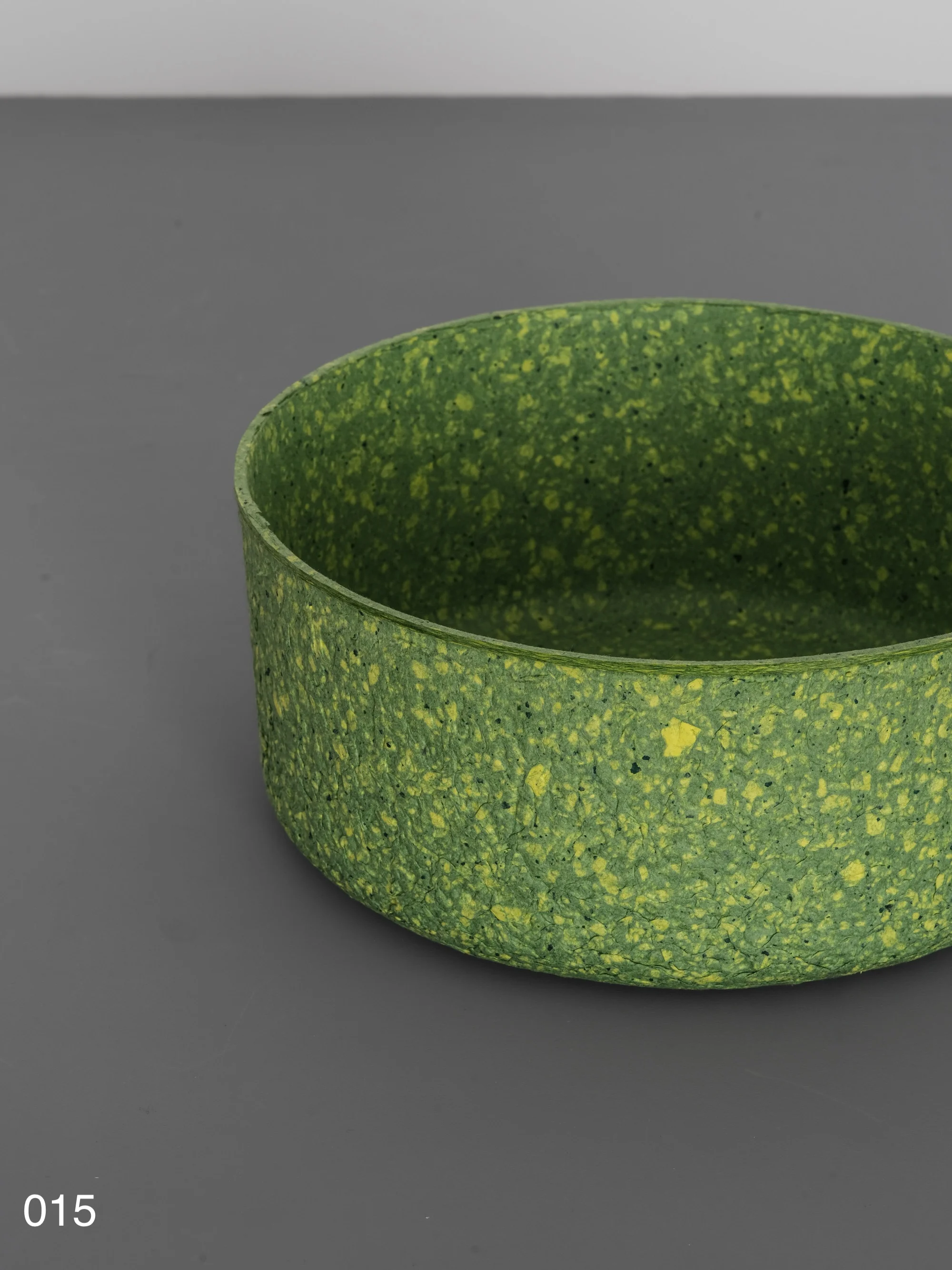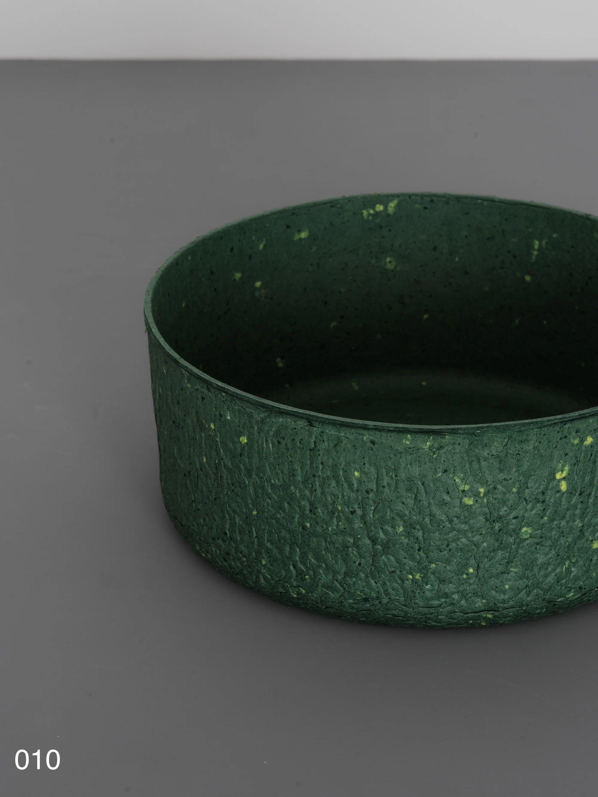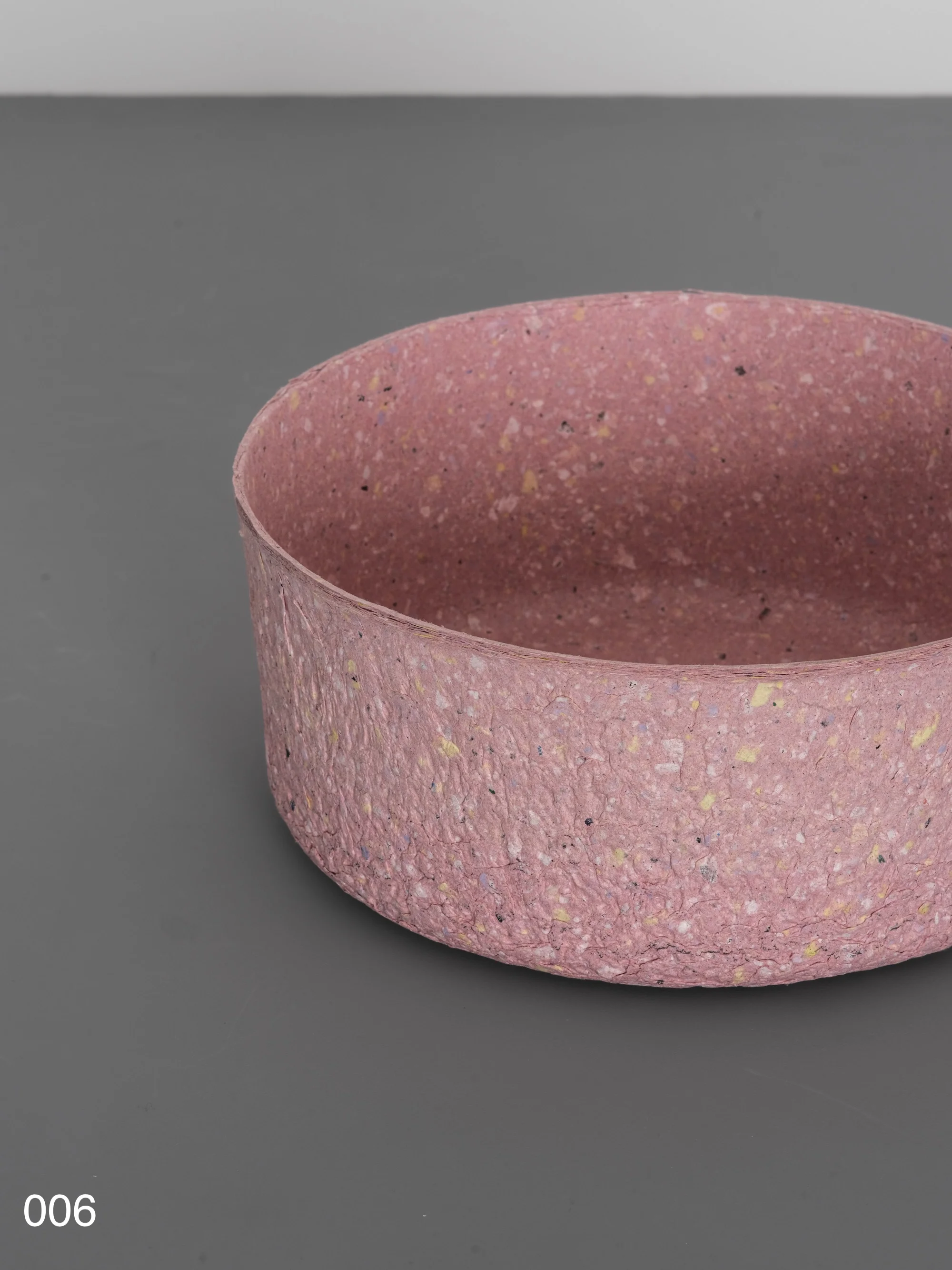 ベースとなる紙に、細かく加工した異なる色の紙を重ねていく。その試行のなかで、予測の及ばない色と質感が立ち現れます。そこから生まれるかたちはすべて固有であり、同じものはひとつとして存在しません。オブジェクトとして、また日用品の収納として、棚やデスクに置くことで日々の風景に彩りを添えます。空間に溶け込みながら、色と質感が静かなリズムを生み出します。