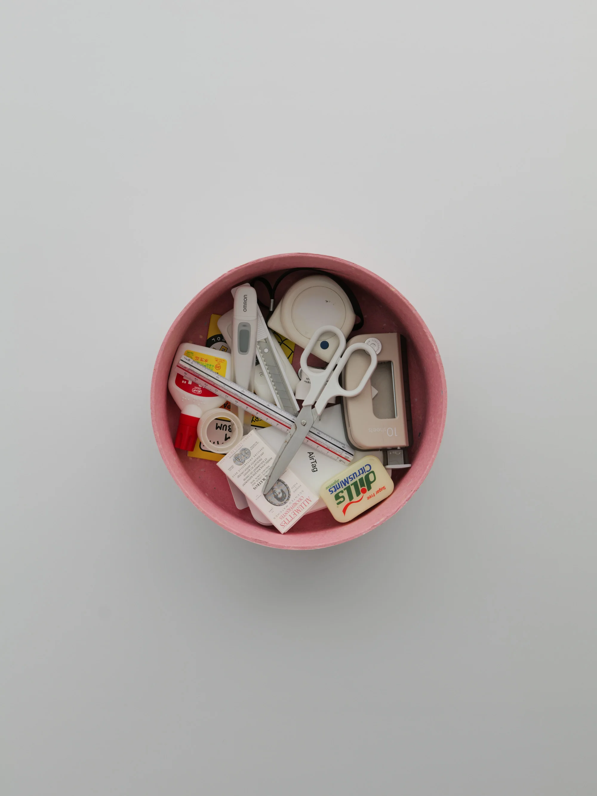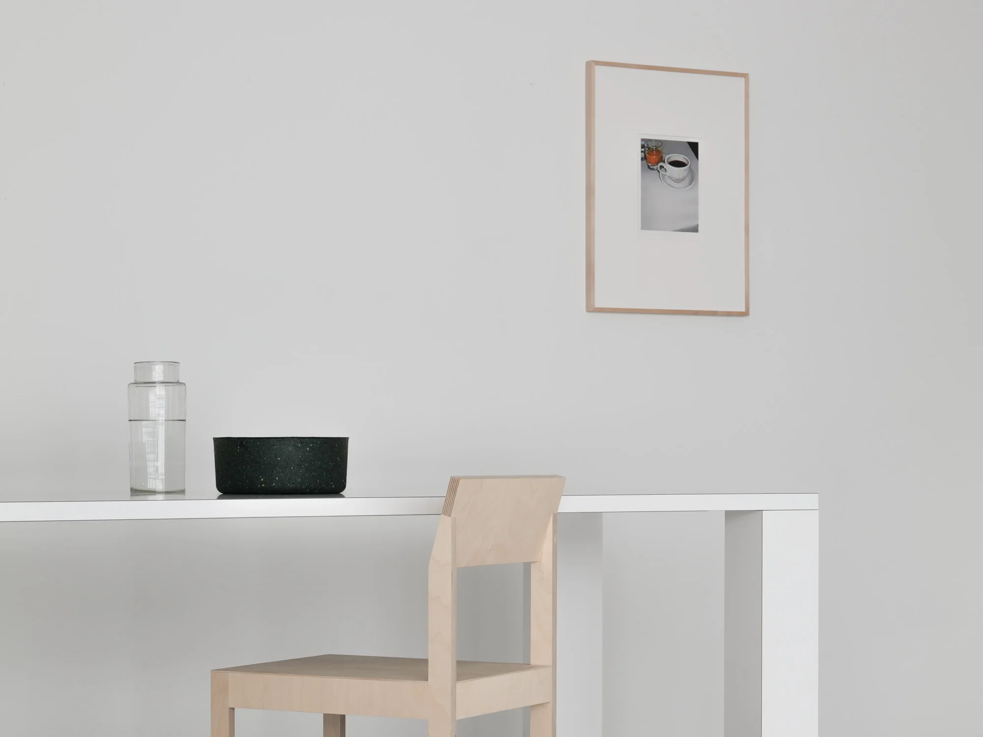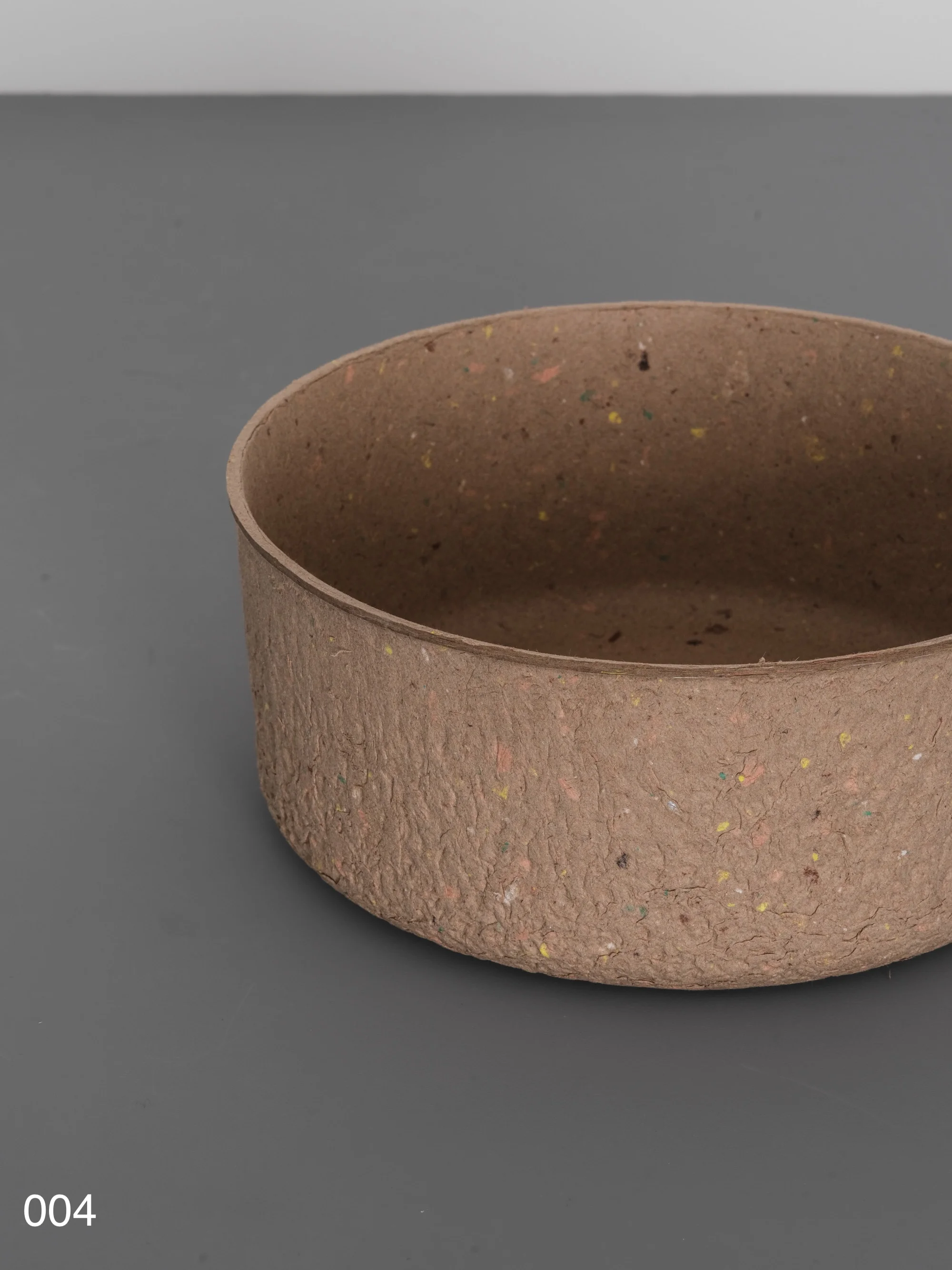 ベースとなる紙に、細かく加工した異なる色の紙を重ねていく。その試行のなかで、予測の及ばない色と質感が立ち現れます。そこから生まれるかたちはすべて固有であり、同じものはひとつとして存在しません。オブジェクトとして、また日用品の収納として、棚やデスクに置くことで日々の風景に彩りを添えます。空間に溶け込みながら、色と質感が静かなリズムを生み出します。